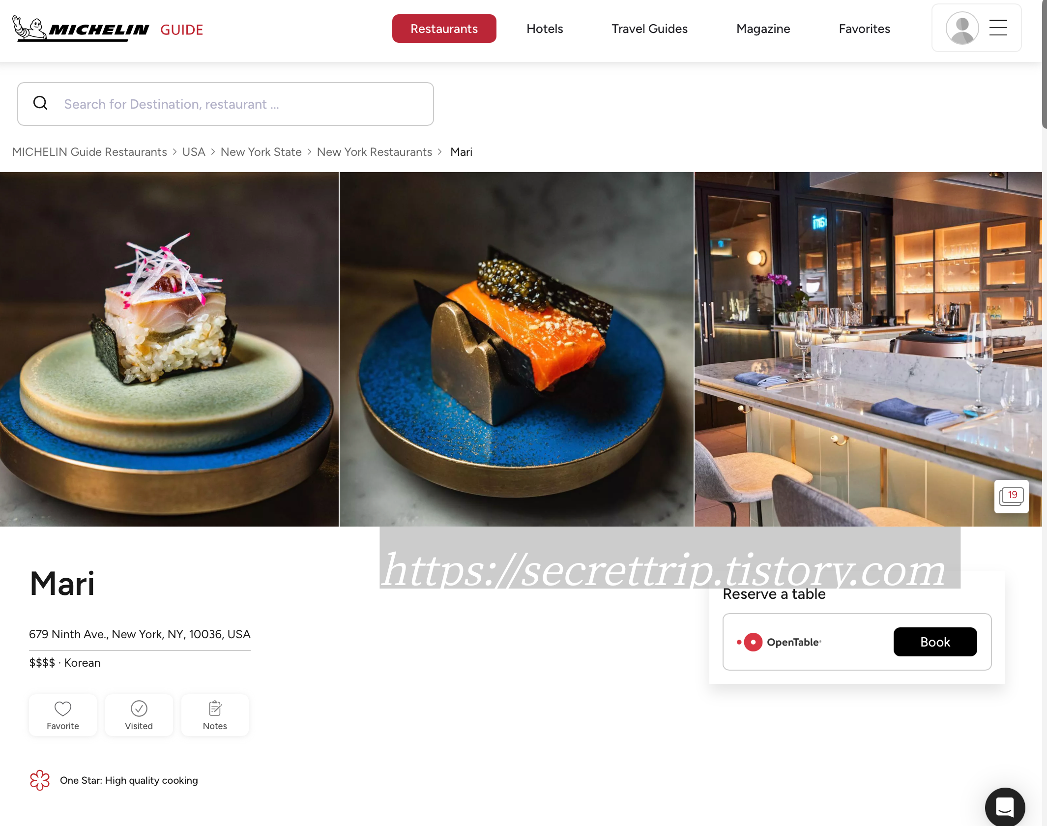 뉴욕 미슐랭 1스타 마리!!